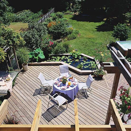 花园创意 GARDEN IDEAS 无论你有一个小花园还是露台,我们都鼓励你对枯燥的混凝土板说“不”! 不要错过 这些 小花园的想法 我们告诉你如何将花园改造成令人愉快的地方~ 1 静思 这个18英寸深的倒影池是用风景木材塑造的,用橡胶衬垫覆盖。近距离的露台铺位创造了一个坚固的表面,让业主可以享受到水的平静的影响。 2 简单的几何形状给这个简单的水上花园带来了优雅的形式。六角形的踏脚石和一个圆形的瓮,有喷泉的喷泉点缀着水池。用砖块固定住塑料衬垫。 3 这个多层甲板上的座位被邻近池塘的景色和声音增强了。掩映在树丛中,避风的花园有一种禅宗式的氛围,专注于自然材料和日本元素。 4 一个叫做里尔的水渠,平分了这个满是老式玫瑰的花园。水在海拔的变化过程中会下降,并从一个捕捞盆地中重新循环。它会成为你的花园中一个醒目的焦点。 5 游泳池的转换 如果你想要比游泳池更自然的景观,试着把它转换成池塘。这个富有创造力的房主用沙袋填满了泥土,形成池塘的内墙,并为睡莲创造了条件。 6 音乐的耳朵 一个倾斜的后院是一条小溪和瀑布的完美的基础,它提供了甜美的旋律,水从岩石上翻滚下来。在小溪边用玫瑰和沙斯塔雏菊来吸引更多的注意力。 7 一个凸起的池塘,把你的水上花园的景色和声音都放在附近。把它包裹在你的露台或露台的一角,让你更亲密。 8 把一个喷泉带进一个种植床。在这个引人注目的例子中,一个水泵将水从雕塑里泻入池塘。一群鹦鹉的羽毛在池中生长。 9 通过增加一个茶馆和一个胶木栈桥或桥梁,以一个亚洲水园的主题为主题。用茶馆安静的沉思或者作为客人的聚会场所。 10 当代喷泉 有一个小空间在紧凑的水景中产生巨大的影响。一个由石球、板岩和石铺子组成的循环喷泉,是一种优雅而又易于创造的添加物,适合任何户外生活区域。