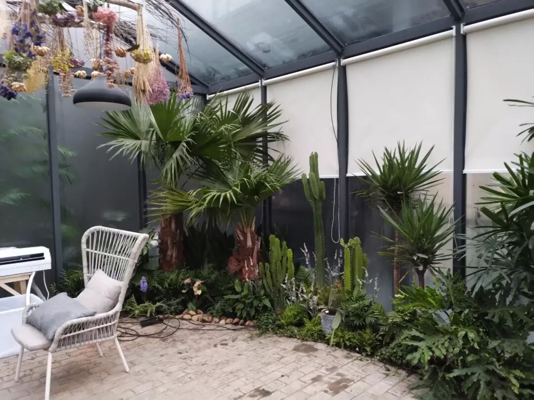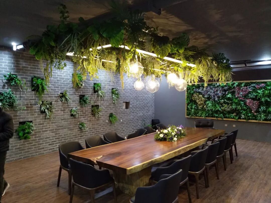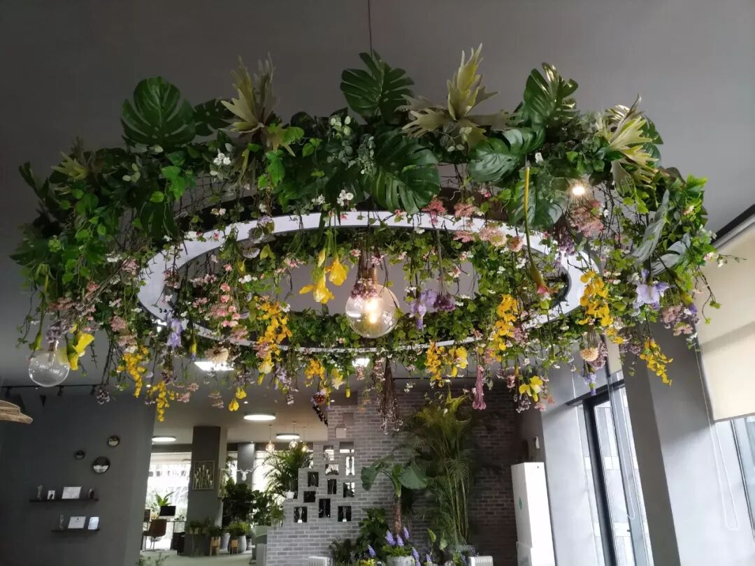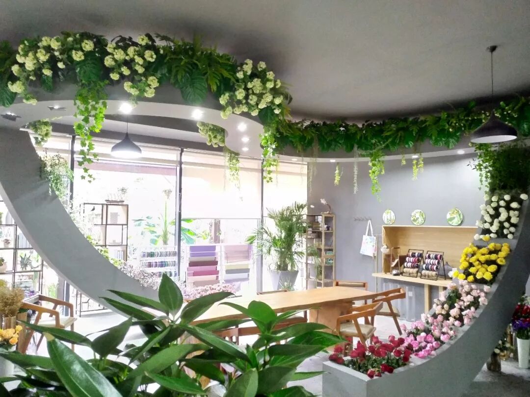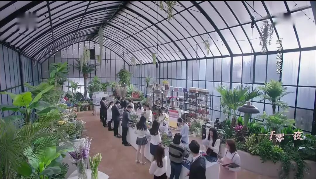 剧中场景,不论是浪漫的城堡,还是现代风的花艺公司,镜头所到之处,皆是美美的鲜花绿植。 话不多说,这就来欣赏欣赏设计师匠心独具的设计吧。 场景一:拥抱自然的森系吊灯 剧照 第二集出现的会议室,一盏别致的森系吊灯让清新感扑面而来。 设计师无滤镜现场图 整个吊灯以蕨类、芋科等绿色植物为主,搭配一些垂吊的空气凤梨等植物,适当穿插淡色系花,清新自然,生机勃勃。 剧照 柏海公司门口大型花艺吊灯也是相当瞩目。 设计师无滤镜现场图 以绿色长藤植物为打底,再把各种花卉植物用倒吊的方式固定在边框上,相互之间高低错落,色彩缤纷,搭配暖色灯光,格外烘托气氛。 除了这几个大吊灯,还有一些小型花艺吊灯也是非常别致。 场景二:缤纷多彩的绣球花世界地图 设计师无滤镜现场图 还是刚才那个会议室,一张绣球花世界地图镇场。 以绿植蕨类打底代表海洋,用四个不同的色系代表不同的陆地大洲,色彩协调,饱满洋溢。 场景三:悬空绽放的花艺吊顶 设计师无滤镜现场图 同样以森系绿色为基础,选择大量龟背竹蕨类和绿绣球等,丰富空间层次,增加相互之间的交流。 场景四:极简主义的空间装点 前两集里柏海的办公室有没有吸引到各位花友、迷妹? 为了突出柏海霸道总裁的人设,柏海办公室的绿植搭配也是极简风格,这个镜头右边颇有日式风格的设计是不是非常抢眼? 场景五:郁郁葱葱的玻璃花房 这花房也是这部剧一大重要场景,后面几集大家就会看到啦,这里我就不截图了。 花房两边都用了大量绿植,少量花卉的使用,比如彩色马蹄莲,也都是用的非常克制的颜色,总体上就看上去郁郁葱葱、高低错落,非常养眼和舒服啦。 给大家看一下细节—— 设计师无滤镜现场图 场景六:浪漫温馨的空中花艺 剧照 大家如果去看剧,一定会被剧中大量使用的空中花艺惊艳,其中有好多也是我们搭建哒。 其他:小角落也别有用心 最后给大家看一组角角落落的照片,每一张都是精心的植物搭配哦,有心的花友琢磨琢磨绝对可以直接copy到自己家小院或者客厅、办公室呢。 图解就到这了,还有更多隐藏在剧里的美美搭配,就等大家慢慢去发现咯~最近湖南卫视的新剧《一千零一夜》在花友圈火了,除了迪丽热巴和邓伦美颜盛世惹人注目外,更因为这是一部讲花艺的剧。