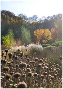 干燥的草叶和紫苑营造出来的毛茸茸质感可以为花园添加一些活力和动感。