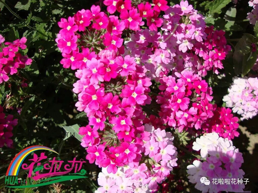 美女樱,马鞭草科,花期:6月-9月,株高:30-35cm,习性:喜阳光、不耐阴,较耐寒、不耐旱。