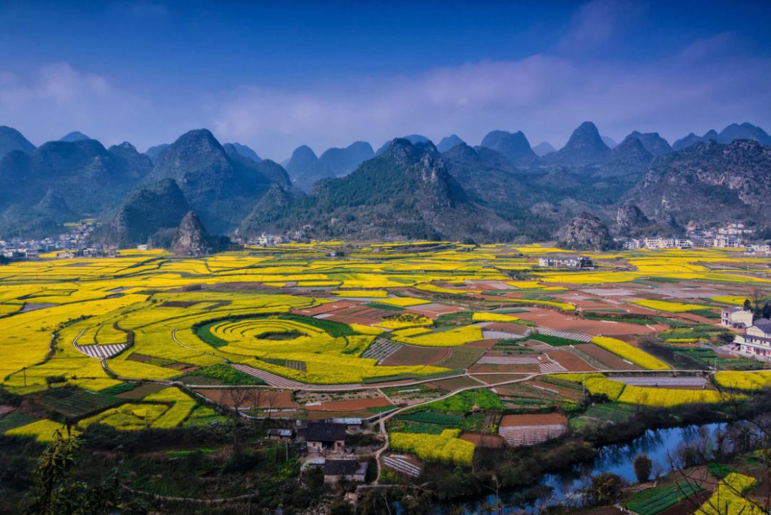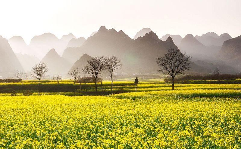 这里集中了中国最全最美的喀斯特山水地貌,也不乏贵州山区少数民族的神秘丰富。而油菜花织就的新衣裳,将这一切山水人文装扮得更加迷人。